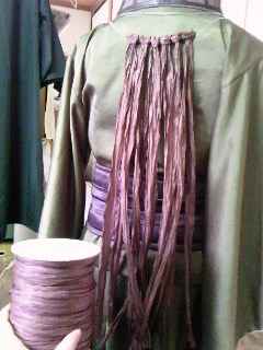 一重だと薄いと思ったので、二重に紐を結べるベースを作ってひたすら紙紐を結ぶ。
