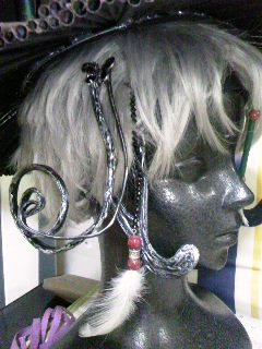 前髪のひょろりはビーズとストローと羽で出来ています。